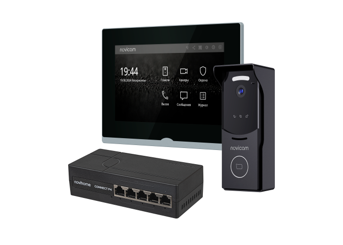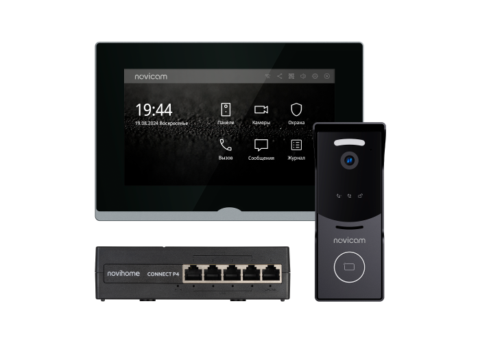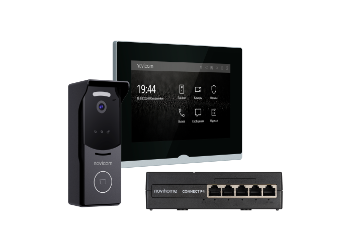 IMPULSE 7 IP KIT BLACK - комплект из IP-видеодомофона, IP-вызывной панели и PoE-коммутатора