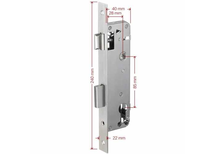 | Врезной механизм | 28 мм - бэксет (длина от края двери, до центра отвертия ручки) 85 мм - межосевое расстояние (длина от центра отвертия ручки, до ключевого отверстия) |