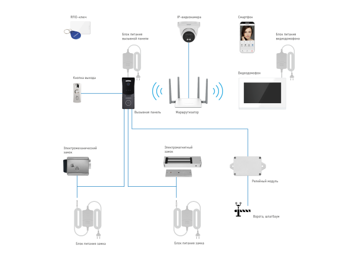| Видеодомофон | RJ-45, Wi-Fi | |