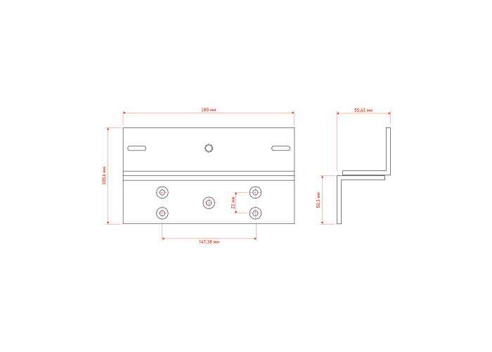 Novicam ZH280 кронштейн Z типа предназначен для монтажа якоря электромагнитного замка DL280. Кронштейн представляет из себя 2 металлических уголка со специальными отверстиями.